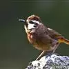 白颊噪鹛是雀形目噪鹛科噪鹛属鸟类,又称土画眉、小画眉、小噪鹃。成鸟额至头顶栗褐色,长眉纹、眼先和颊纹棕白色,眼后至耳羽深褐色,…全部>>