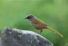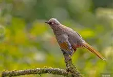 橙翅噪鹛:是噪鹛科、彩翼噪鹛属的中型鸟类,体长22-25厘米。头顶深葡萄灰色或沙褐色。上体灰橄榄褐色,外侧飞羽外翈蓝灰色、基部橙黄色,中央尾羽灰褐色,外侧尾羽外翈绿色而缘以橙黄色并具白色端斑。…全部>>