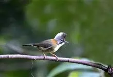 白领凤鹛是画眉科的一类动物。体长15-18厘米。头顶和羽冠土褐色,具白色眼圈,眼先黑色,枕白色,向两侧延伸至眼,向下延伸至后颈和颈侧,在颈部形成白领极为醒目。上体土褐色,飞羽黑色,…全部>>