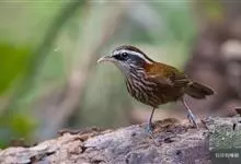 细纹噪鹛是画眉科、噪鹛属型鸟类,体长18-20厘米。上体暗橄榄灰色或暗棕褐色,头顶至后颈具细的黑色轴纹,背具细的白色羽干纹,腰至尾上覆羽橄榄灰色。下体棕褐色密被白色羽干纵纹。特征明显,容易识别。…全部>>