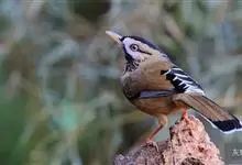 白颊噪鹛是雀形目噪鹛科噪鹛属鸟类,又称土画眉、小画眉、小噪鹃。成鸟额至头顶栗褐色,长眉纹、眼先和颊纹棕白色,眼后至耳羽深褐色,…全部>>