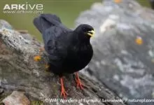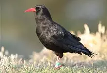 红嘴山鸦,是脊索动物门鸟纲雀形目鸦科鸟类。红嘴山鸦的成鸟通体羽毛纯黑色具有蓝色金属光泽,翼和尾泛有蓝绿色金属光泽;虹膜暗褐色,喙较为尖细,并且呈镰状下弯,喙和脚朱红色。…全部>>
