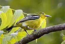 黑翅雀鹎:体重14-19克,体长11.5-16厘米。是树栖性绿色小鸟,外形与叶鹎相似,下体黄色。鸟喙直,翼长而尖,总体羽毛是绿色和黄色相结合,翼上具两道明显近白色横纹,翼近黑而羽缘白。…全部>>