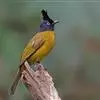 黑冠黄鹎:体长18-21厘米,是一种中等体型偏黄色鹎。整个头、颈、颏、喉黑色,头顶有显著直立的羽冠,黑色,上体褐橄榄黄绿色,下体橄榄黄色。虹膜偏红;嘴及脚黑色。…全部>>