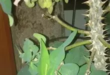 虎刺梅:别称铁海棠,是蔓生灌木植物。茎多分枝,长60-100厘米,直径5-10毫米,具纵棱,密生硬而尖的锥状刺,刺长1-1.5厘米,直径0.5-1.0 毫米,常呈3-5列排列于棱脊上,呈旋转。叶互生…全部>>