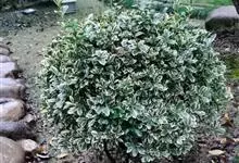 金边黄杨是卫矛科卫矛属的常绿灌木或小乔木,金边黄杨小枝略为四棱形,枝叶密生;单叶对生,倒卵形或椭圆形,边缘具钝齿,表面深绿色,有光泽;聚伞花序腋生,具长梗,花绿白色;蒴果球形,淡红色;花期5~6月。…全部>>