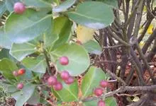 冬青卫矛,是卫矛科卫矛属灌木植物,聚伞花序,花白绿色,花萼裂片半圆形,花瓣近卵圆形,花盘肥大;蒴果近球形,熟时淡红色;叶对生,革质,倒卵形或椭圆形,先端圆钝,基部楔形,…全部>>