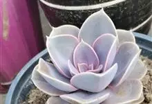 紫珍珠是景天科石莲花属的多年生肉质草本植物。植株中小型;叶片肉质,匙形,呈莲座状紧密排列;叶片粉紫色,叶缘呈粉白色,光照充足时颜色亮丽,不足时叶色会呈现深绿色或灰绿色,叶面光滑,被轻微白粉,…全部>>