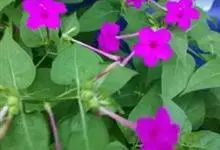 即紫茉莉,英文名:Four-o'clock,Marvel of Peru,为紫茉莉科、紫茉莉属多年生草本植物,一年生栽培。株高50~80cm。根粗壮,茎多分枝而散生。叶对生,卵形或心脏形。花数朵簇生…全部>>