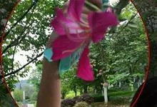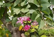 羊蹄甲,别名紫花羊蹄甲、玲甲花,是豆科羊蹄甲属的一种常绿乔木或灌木。树冠开展,枝桠低垂;树皮灰色至暗褐色,近光滑。枝幼时微被灰色短柔毛,后毛脱落;叶硬纸质,近圆形,基部浅心形,…全部>>