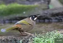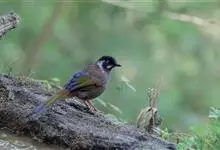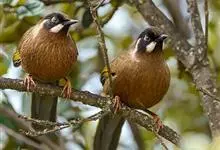 黑顶噪鹛:中型鸟类,体长24-26厘米。前额、脸、颏、喉黑色,头顶黑褐沾棕或深棕橄榄褐色,背栗褐或棕褐色,颧斑白色或棕红色,眼后缘和颈侧亦具白斑,飞羽金黄橄榄色而具蓝灰色尖端。下体淡棕褐色。…全部>>