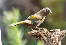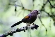 橙翅噪鹛:是噪鹛科、彩翼噪鹛属的中型鸟类,体长22-25厘米。头顶深葡萄灰色或沙褐色。上体灰橄榄褐色,外侧飞羽外翈蓝灰色、基部橙黄色,中央尾羽灰褐色,外侧尾羽外翈绿色而缘以橙黄色并具白色端斑。…全部>>