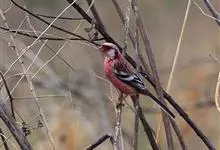 藏朱雀:全长约17-18厘米。雄鸟头部深红色具光辉,喉部暗红色具白色点斑;背部灰白色,各羽具玫瑰红色羽端,形成许多斑纹;腰部淡玫瑰红色;翅暗褐色,沾灰白,羽端沾玫瑰红或灰白色;尾暗棕色,端缘玫瑰红色…全部>>