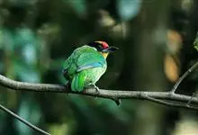 金喉拟啄木鸟,是须鴷科、拟啄木鸟属的鸟类。金喉拟啄木鸟为小型鸟类,体长19-24厘米。额深红色,头顶金黄色,后枕具一大块深红色斑,耳羽和头侧银灰色,上体草绿色,颏和上喉金黄色,下喉淡银灰色,…全部>>