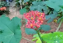 佛肚树是大戟科麻风树属的直立灌木。株高可达1.5米;茎基部或下部通常膨大呈瓶状;枝条粗短,具散生突起皮孔;叶盾状着生,近圆形或宽椭圆形,先端圆钝,基部平截或钝圆,托叶分裂呈刺状,宿存;花序顶生,…全部>>