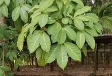 橡胶树 Müll. Arg.)是大戟科橡胶树属大乔木。株高达30米;掌状复叶具小叶,顶端有腺体,小叶椭圆形,先端短尾尖,基部楔形,全缘,无毛,网脉明显;花序腋生,圆锥状,被灰白色柔毛,…全部>>