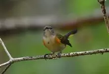 红胸啄花鸟:体重5-10克,体长60-92毫米。体形纤小。雄鸟上体呈辉亮的金属绿色;下体棕黄,胸部具一朱红色块斑,极易与其他啄花鸟区别。雌鸟上体呈橄榄绿,下体棕黄色。虹膜褐色,嘴褐黑色或角灰色,…全部>>