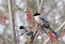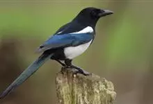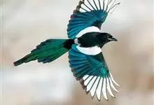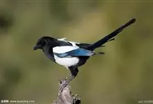 喜鹊:是鸦科、鹊属的一种鸟类。共有11个亚种。体长40-50厘米,雌雄羽色相似,头、颈、背至尾均为黑色,并自前往后分别呈现紫色、绿蓝色、绿色等光泽,双翅黑色而在翼肩有一大形白斑,尾远较翅长,呈楔形,…全部>>