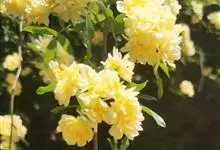 黄木香花 Rehd.)是蔷薇科、蔷薇属植物,为木香花的变型品种,攀缘小灌木,高可达6米。小叶3-5枚,稀7枚,小叶片椭圆形或长圆状披针形,先端急尖或稍钝,基部近圆形或宽楔形,边缘有紧贴细锯齿。花小型,…全部>>