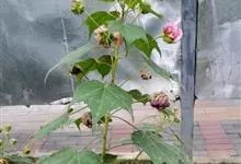 海滨木槿是锦葵科木槿属植物,落叶小乔木,株高3-5米,胸径20厘米,扁球形树冠,枝叶繁盛。厚纸质单叶互生,扁圆形、倒卵形或宽倒卵形,先端钝近平,具短突尖,基部圆形或浅心形,叶缘中上部具细圆齿,…全部>>