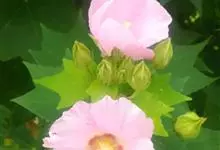 木芙蓉,锦葵科木槿属落叶灌木或小乔木。小枝上有细绒毛;叶片为卵状心形,托叶为披针形,常早落;花单生,花萼为钟形,花冠初为白色或淡红色,后逐渐变为深红色;果实为扁球形,有淡黄色的毛附着。花期8到10月。…全部>>