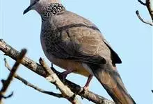 珠颈斑鸠,别名花斑鸠、珍珠鸠、花脖斑鸠、鸪鹪,是鸠鸽科副斑鸠属鸟类。体型中等,体长27~34cm,体重120~205g,雌鸟和雄鸟羽色相似,但雌鸟不如雄鸟羽色亮泽。珠颈斑鸠前额至头顶羽色稍淡,…全部>>