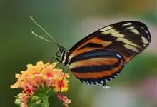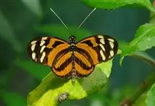 虎斑蝶,Danaus genutia ,是斑蝶属的一种,常见于湿地公园内。雄性虎斑蝶经常伏于吊裙草 上吸食汁液,以制造吸引异性的香气。虎斑蝶翅膀腹面鲜橙色,翅脉和翅边缘黑色,边缘上有两行小白点,…全部>>