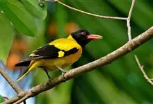 黑枕黄鹂又称黄莺、黄鹂、金衣公子等,是雀形目黄鹂科黄鹂属鸣禽。体长23~27厘米,嘴略下弯,粉色;雄鸟整体主要呈鲜明的黄色,黑色过眼纹在额和枕后相连,且在枕后较粗,形成一围绕头顶的黑色宽带;飞羽黑色,…全部>>
