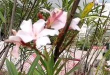 夹竹桃,又名红花夹竹桃、欧洲夹竹桃,是夹竹桃科夹竹桃属的一种常绿直立大灌木,枝条灰绿色,含水液。叶披针形,3叶轮生。聚伞花序顶生,花冠粉红至深红色,花冠漏斗状,有特殊香味。蓇葖果,圆柱形。种子长圆形,…全部>>