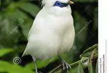 长冠八哥:是一种大型椋鸟,体长约25厘米,雌雄相似,外形俊朗,羽冠发达,眼睛四周和面部裸出,裸露部分为蓝色,全身羽毛纯白色,尾部和翼端的边缘呈黑色,脚灰色。全身白色,具较长冠羽,…全部>>