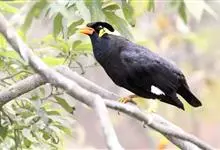 金冠树八哥为椋鸟科树八哥属的鸟类。体长约23厘米,闪辉黑色。特征为具翼斑及颏黄色,脸颊裸露皮肤粉黄色。分布于印度、缅甸、泰国以及中国大陆的云南、广东等地。…全部>>