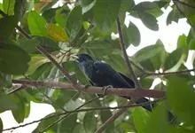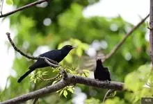 噪鹃是鹃形目杜鹃科噪鹃属鸟类,又名栽秧雀、哥好雀。雄鸟通体乌黑泛幽蓝色金属光泽,下体泛蓝绿色;虹膜血红色,啄淡土黄色,基部较暗,脚蓝灰色。雌鸟上体、翼和尾为深褐色,…全部>>