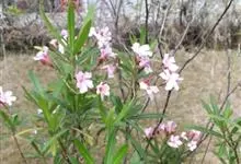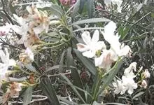 白花夹竹桃是夹竹桃科、夹竹桃属植物夹竹桃的栽培品种。常绿直立大灌木,枝条灰绿色;嫩枝条具稜,被微毛,老时毛脱落。叶3-4枚轮生,下枝为对生,叶面深绿,叶背浅绿色;侧脉纤细平行与中脉成直角;叶柄扁平,…全部>>