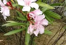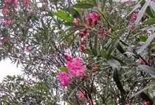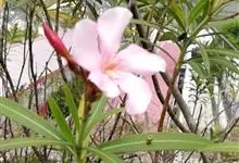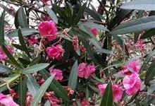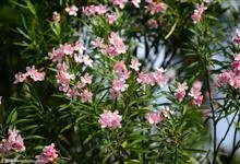 夹竹桃,又名红花夹竹桃、欧洲夹竹桃,是夹竹桃科夹竹桃属的一种常绿直立大灌木,枝条灰绿色,含水液。叶披针形,3叶轮生。聚伞花序顶生,花冠粉红至深红色,花冠漏斗状,有特殊香味。蓇葖果,圆柱形。种子长圆形,…全部>>