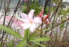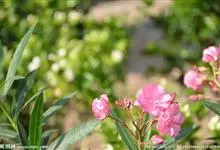 夹竹桃,又名红花夹竹桃、欧洲夹竹桃,是夹竹桃科夹竹桃属的一种常绿直立大灌木,枝条灰绿色,含水液。叶披针形,3叶轮生。聚伞花序顶生,花冠粉红至深红色,花冠漏斗状,有特殊香味。蓇葖果,圆柱形。种子长圆形,…全部>>