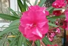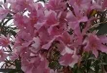 夹竹桃,又名红花夹竹桃、欧洲夹竹桃,是夹竹桃科夹竹桃属的一种常绿直立大灌木,枝条灰绿色,含水液。叶披针形,3叶轮生。聚伞花序顶生,花冠粉红至深红色,花冠漏斗状,有特殊香味。蓇葖果,圆柱形。种子长圆形,…全部>>