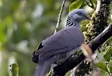 灰林鸽,为鸠鸽科、鸽属的鸟类。灰林鸽体型中等,体长35-40厘米,头灰色、喉中央白色,颈部有淡肉黄色鳞状斑形成的颈环。上背黑褐色,具绿紫色金属光泽,下背至尾黑色。胸灰褐色,腹暗黄色,尾下覆羽皮黄色,…全部>>
