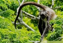 蛛猴属:共有7种。头体长约35-66厘米。头又圆又小,四肢细长,手没有拇指。毛茸茸的尾巴约有60-92厘米长,很会抓住树枝,其功能有点像手。尾巴比身体还长,缠绕性极强。能直立行走。…全部>>