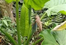 海芋 K. Koch),是天南星科海芋属的大型常绿草本植物;具匍匐根茎,有直立地上茎,基部生不定芽条;叶多数,亚革质,草绿色,箭状卵形,叶柄绿或污紫色,螺旋状排列,粗厚;花序梗圆柱形,绿色,有时污紫色,…全部>>