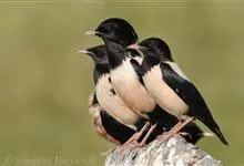 粉红椋鸟:中等体型,成鸟体长19-22厘米,体重60-73克,飞羽、尾羽为亮黑色,雌鸟与雄鸟毛色相似,但较黯淡。形似八哥,但背部及腹部粉红色,故称粉红椋鸟。余羽棕黑,十分可爱。雌鸟图纹相似但较黯淡。…全部>>