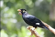 鹩哥是雀形目椋鸟科鹩哥属鸟类。成鸟主体黑色,具蓝紫色金属光泽;头顶中央羽毛硬且卷曲;眼下有一黄色裸露区域,经头后延伸到枕部;腰和尾上覆羽具铜绿色光泽,…全部>>