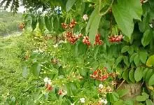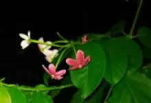 使君子 Jongkind)是使君子科、使君子属攀援灌木,叶对生,椭圆形,两面均被灰白色柔毛。穗状花序,倒挂下垂。花期夏秋。果有五棱,熟时黑色,种子白色。分布于印度、缅甸、菲律宾和中国。喜温润,深根性,…全部>>