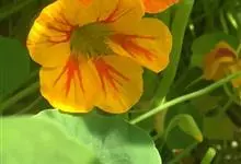 旱金莲是旱金莲科旱金莲属蔓生一年生草本植物。叶互生,叶柄向上扭曲,盾状,叶圆形,具波状浅缺刻,下面疏被毛或有乳点;花黄、紫、桔红或杂色,花托杯状,花瓣为圆形,边缘具缺刻;果实为扁球形;花果期6-10月,…全部>>