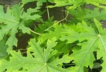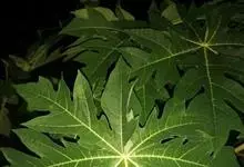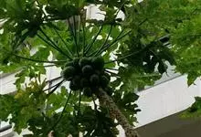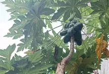 番木瓜,番木瓜科番木瓜属的常绿软木质小乔木,高达10米,具有乳汁;茎不分枝或有时于损伤处分枝;叶大且聚生于茎顶,近似盾形,叶柄中空;花单性或两性,有些品种雄株偶尔生两性花或雌花,…全部>>