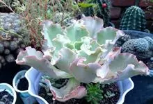 女王花笠,又名扇贝石莲花、女王花舞笠,是景天科拟石莲花属的多肉植物。由美国加利福尼亚州的育种师Dick Wright于1964年培育。特征是呈大波浪状褶皱的红色叶缘和气质高贵的粉紫色调。…全部>>