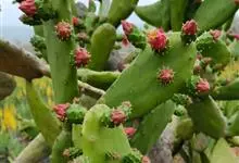 胭脂掌 Mill.)仙人掌科肉质灌木或小乔木,高2-4米,圆柱状主干直径达15-20厘米。分枝多数,椭圆形、长圆形、狭椭圆形至狭倒卵形,无毛,暗绿色至淡蓝绿色;小窠散生,不突出。叶钻形,绿色,早落。…全部>>
