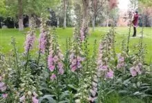 毛地黄是车前科、毛地黄属一年生或多年生草本植物。株高0.5—1米,茎直立,少分枝,全株被灰白色短柔毛和腺毛叶基生,呈莲座状,卵圆形或卵状披针形。顶生总状花序,花冠钟状,紫红色,内面有浅白斑点。菊果卵形。…全部>>