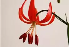 山丹是百合科百合属的多年生草本植物。鳞茎卵形或圆锥形,鳞片长圆形或长卵形,白色;叶散生茎中部,线形,边缘有乳头状突起;花单生或数朵成总状花序,花鲜红色,常无斑点,花被片反卷,…全部>>