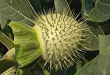 曼陀罗,茄科曼陀罗属一年生大型草本植物,全株光滑。有臭气;叶呈广卯形,边缘具不规则波状浅齿裂;花单生于枝杖间或叶腋,直立,有短梗;花萼是筒状裂片三角形,颜色为白色或淡紫色;果实为蒴果卵状,…全部>>