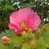 木芙蓉,锦葵科木槿属落叶灌木或小乔木。小枝上有细绒毛;叶片为卵状心形,托叶为披针形,常早落;花单生,花萼为钟形,花冠初为白色或淡红色,后逐渐变为深红色;果实为扁球形,有淡黄色的毛附着。花期8到10月。…全部>>
